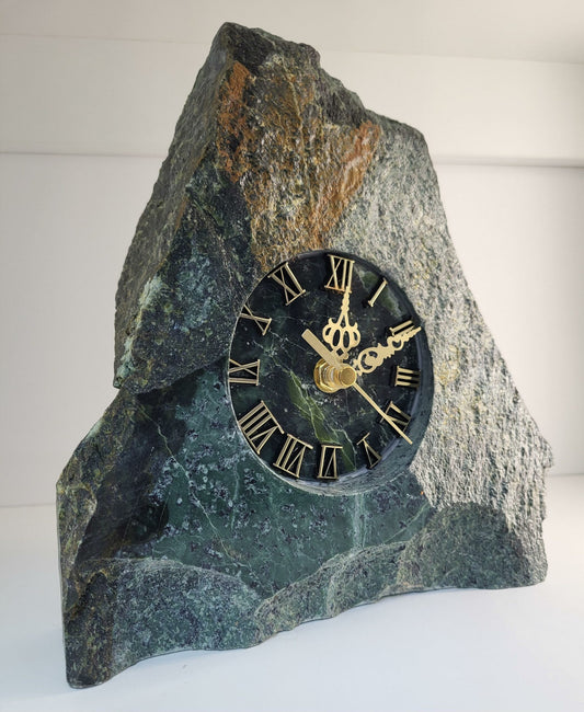 Zegar skałka z zielonego kamienia