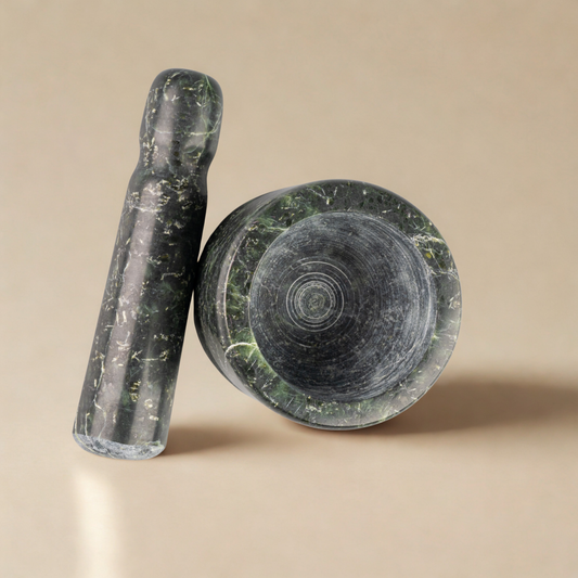 Duży moździerz z zielonego kamienia