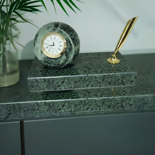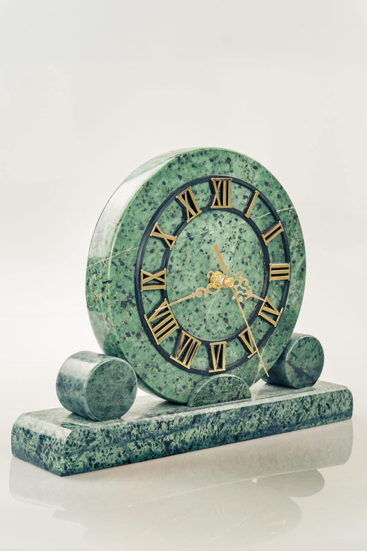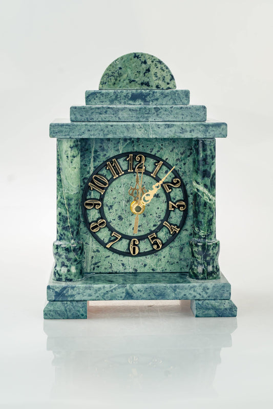 Zegar kominkowy z zielonego kamienia