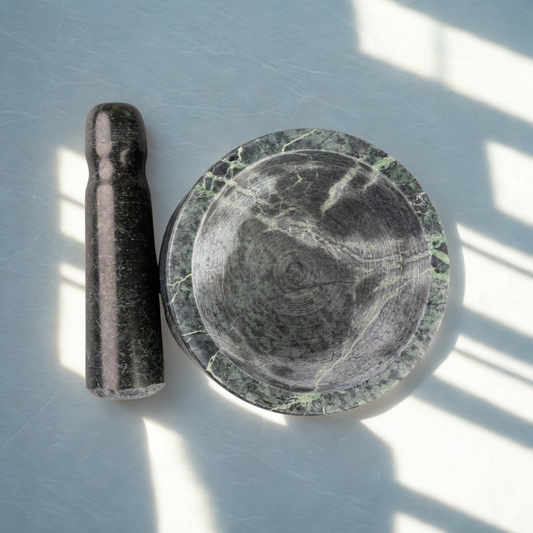 Duży moździerz z zielonego kamienia