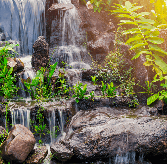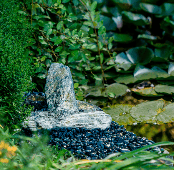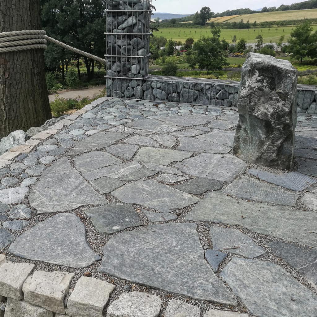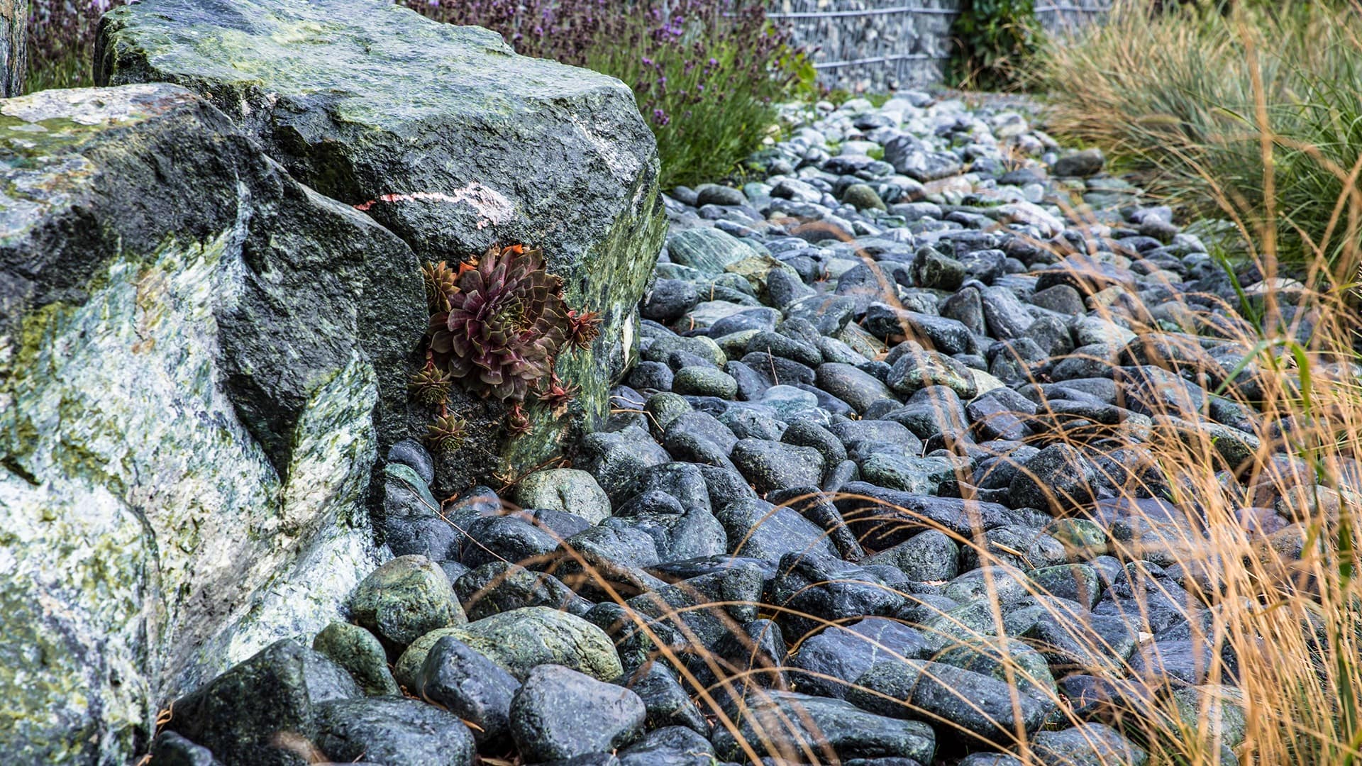 A small waterfall in a rock garden can be a special attraction – the “Green Boulder” rock blocks will be perfect for this. The bottom of the stream can be lined with “Green Dream” pebbles. You can plant the banks of the reservoir with primroses, forget-me-nots, marsh spurge, hanging sedge, bergenias and low ferns and alpine plants will also grow well – all of them feel great in the company of green rocks.