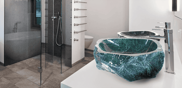 The intriguing green of our stone and its structure give the arrangements a unique character. Nature, which enters the interior with the evergreen stone, also introduces harmony. Green accessories fit perfectly into the latest trends in interior design.