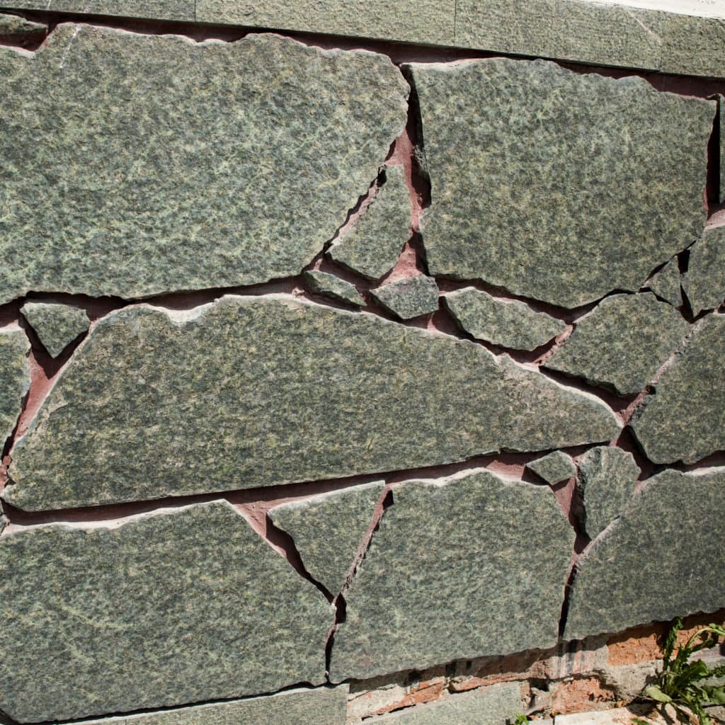 Green stone fits perfectly into natural interior arrangements as an effective finishing touch to the styling. It will work perfectly both as a finishing material for walls inside the building. Gabion structures and flexible tiles can be used to create an attractive and functional facade. Another tempting solution for home spaces are cut, cut-split, polished or flamed slabs, which can be used to finish walls and floors or countertops and window sills.