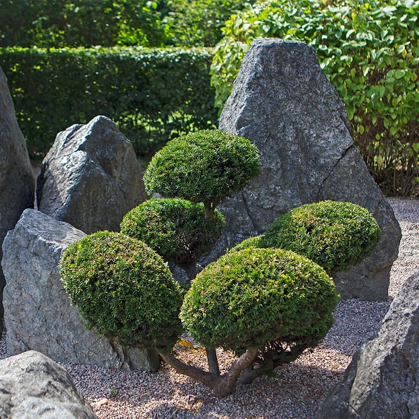 The use of green stone in the arrangement