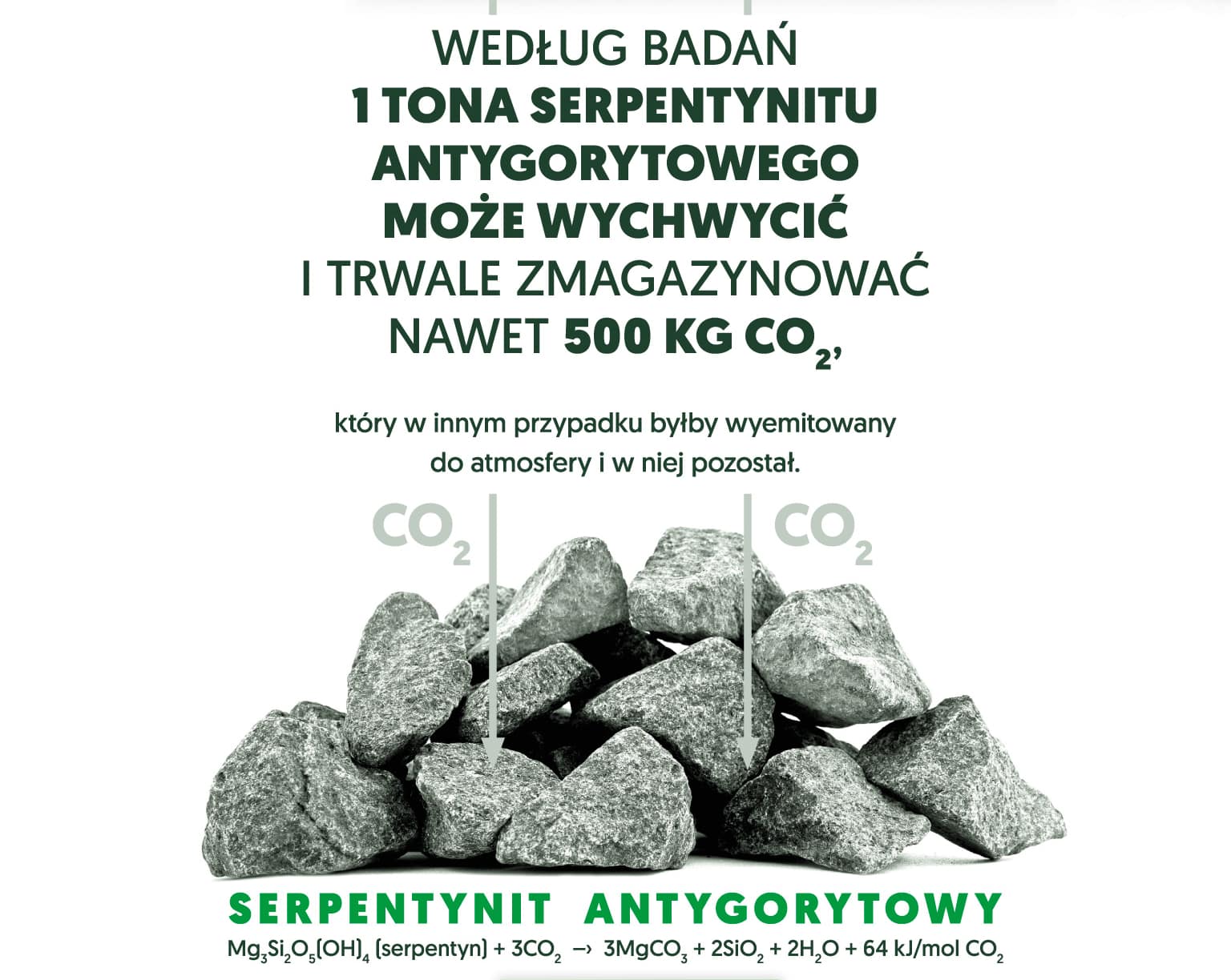 One ton of serpentinite can store up to half a ton of CO2. This is – apart from the rare olivine – the highest result among mineral resources.