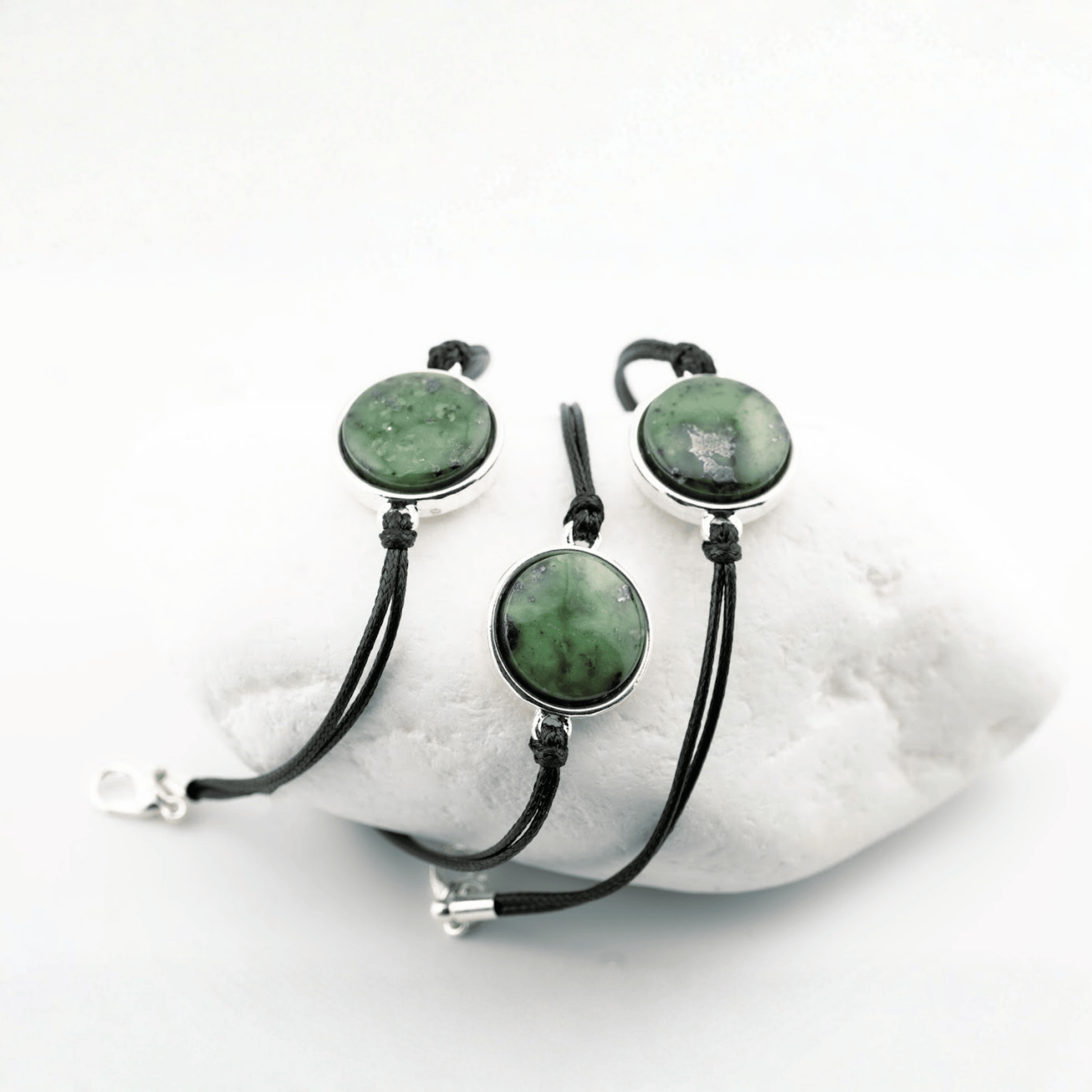 Antygoryt nasycony jest licznymi odcieniami zieleni – od mglistych i jasnych, barwiących szarości, przez intensywnie seledynowe i nefrytowe, po subtelnie stygnące w czerni… Piękna, niejednorodna struktura antygorytu, z sieciami nitkowanych przecięć, żyłek i smug tworzy kolejne warstwy zielonego mikroświata.
