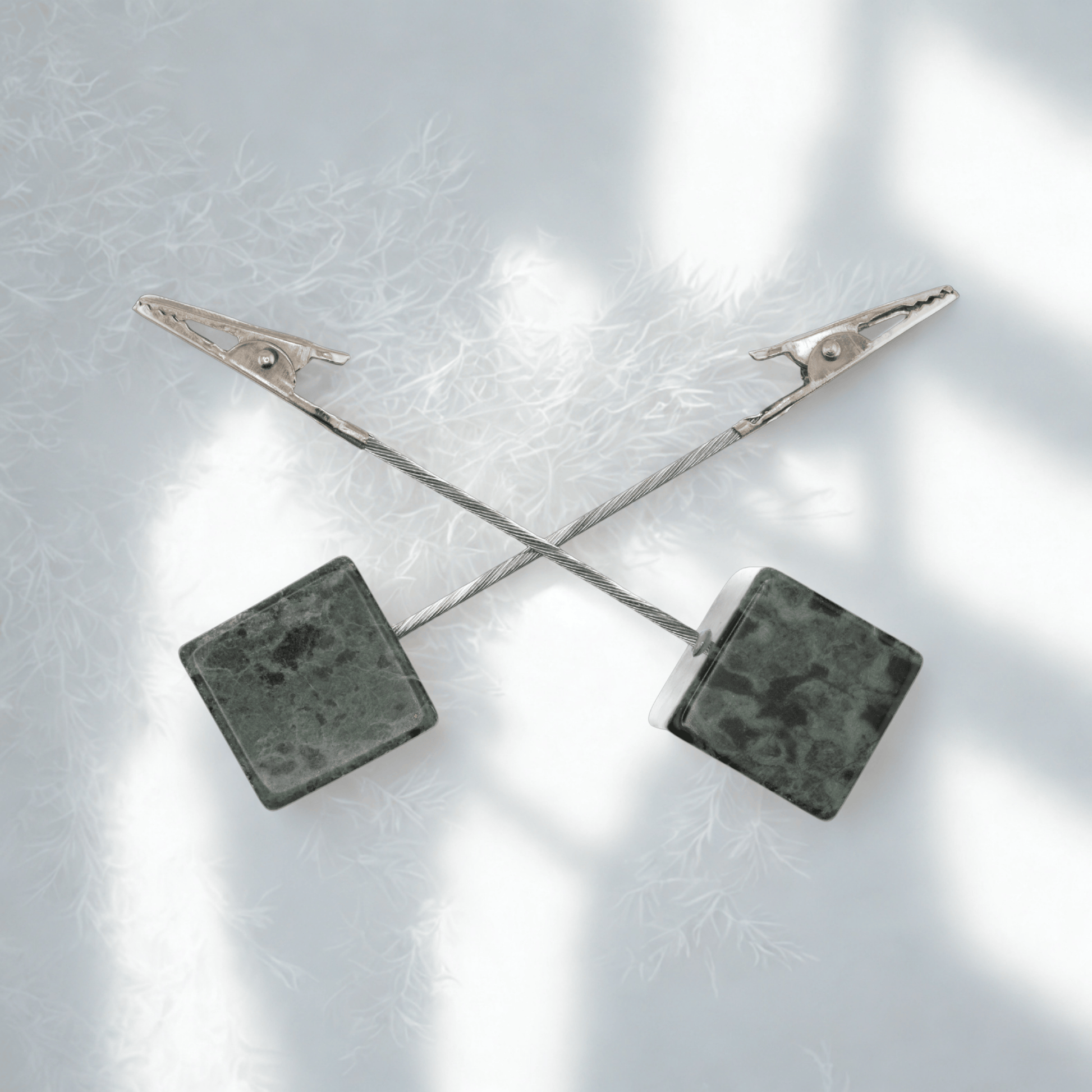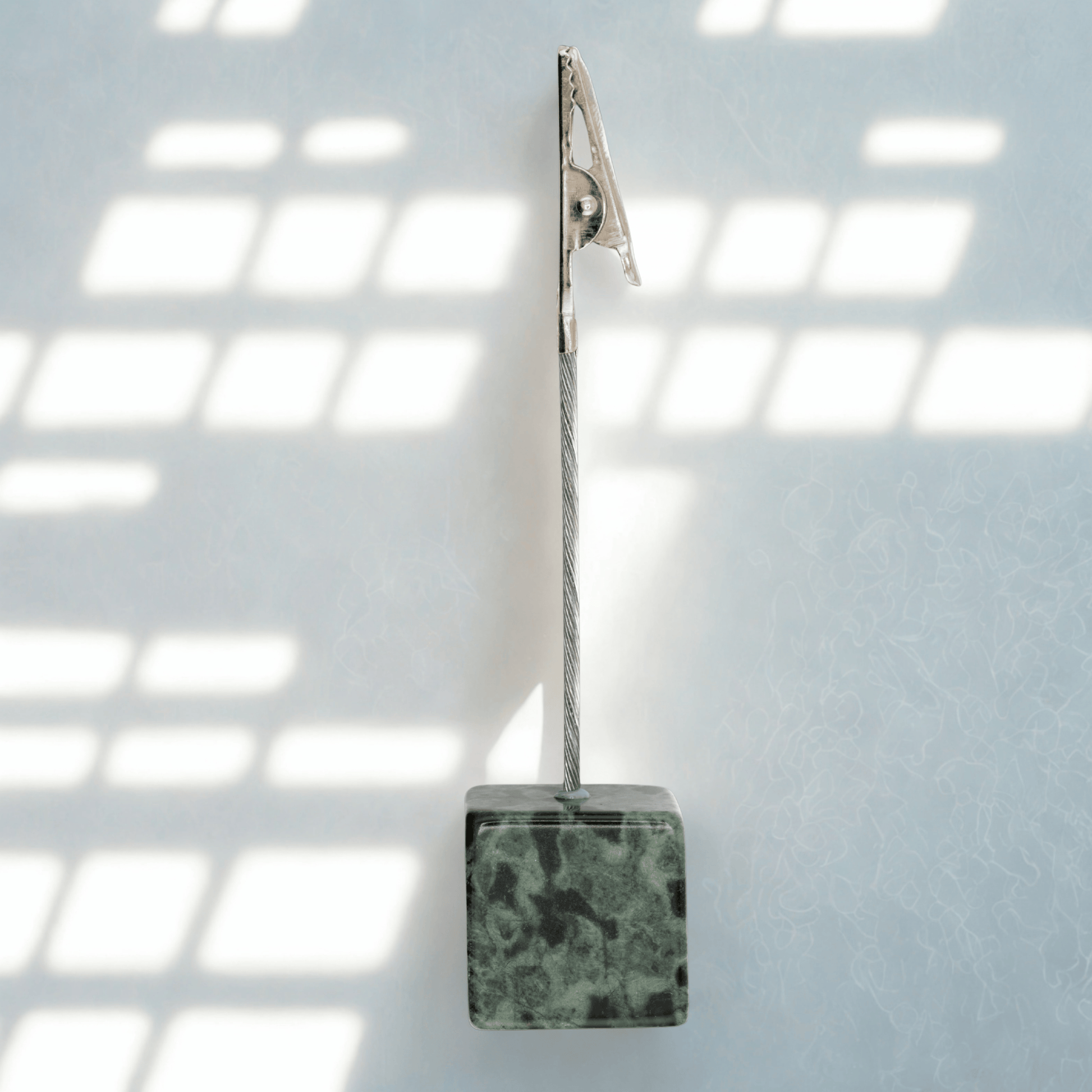 Każdy uchwyt z klipsem na zdjęcia, jest ręcznie wykonany z starannie wyselekcjonowanych fragmentów antygorytu. Kamień ten jest nasycony licznymi odcieniami zieleni, od delikatnych i jasnych, które przypominają mgłę, przez intensywne seledynowe i nefrytowe, aż po subtelnie stygnące w czerni. To niezwykłe spektrum barw sprawia, że każdy nasz uchwyt jest unikatowy, podobnie jak Twoje fotografie.