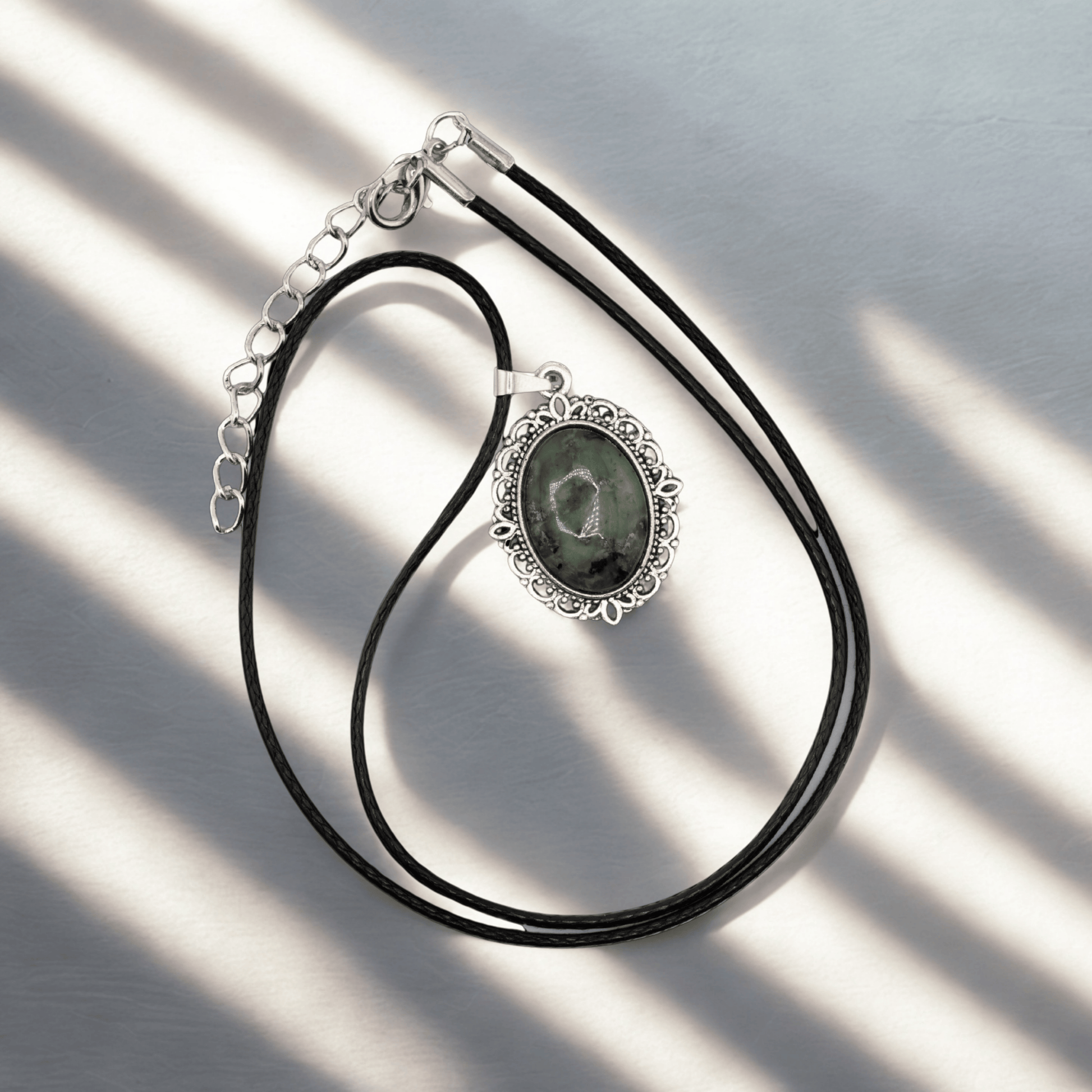 Niezwykła, niejednorodna struktura serpentynitu antygorytowego, z sieciami nitkowanych przecięć, żyłkami i smugami, tworzy fascynujący mikroświat natury na Twoim dekolcie. To jak kawałek przeszłości, który może teraz stać się częścią Twojej teraźniejszości.