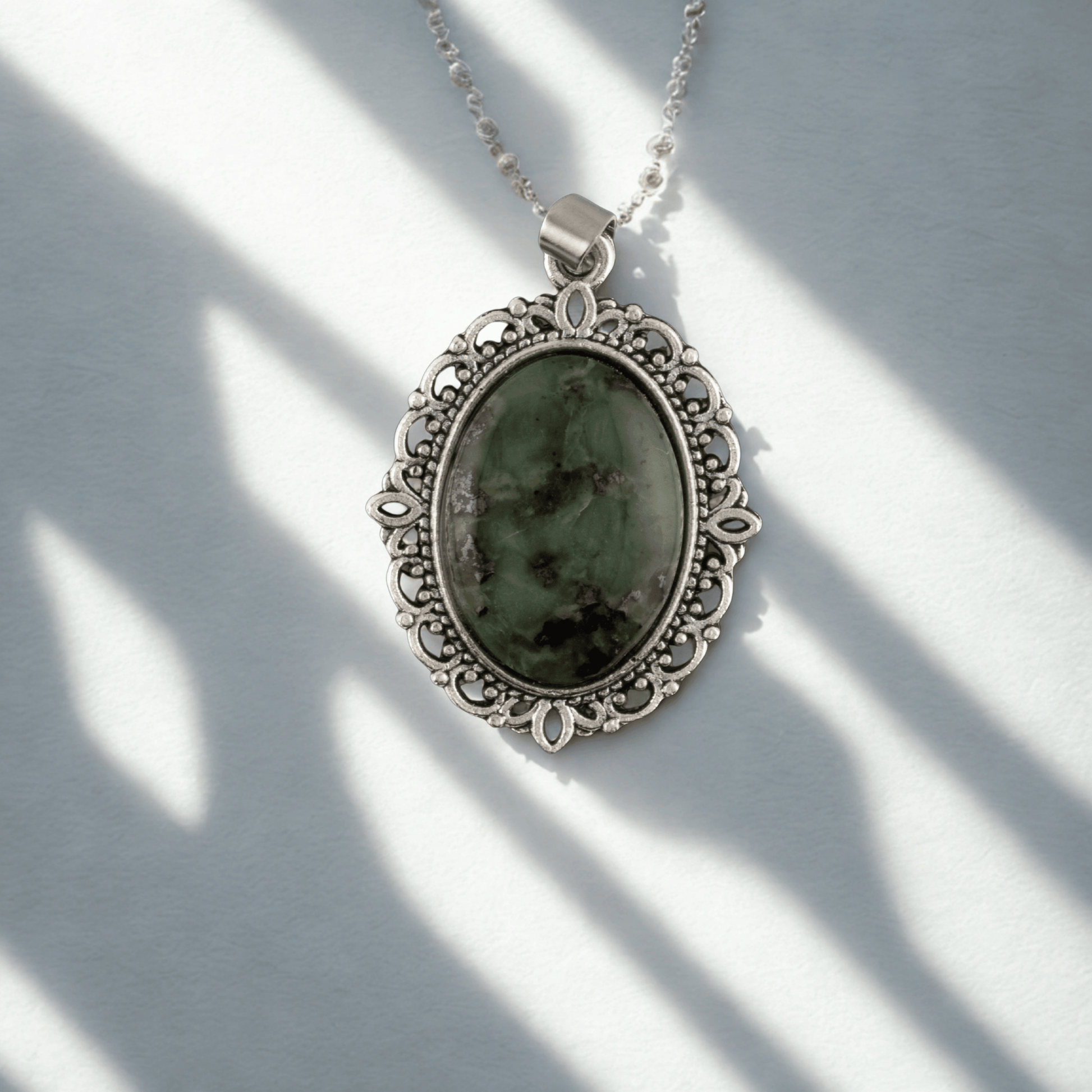 Nasz antyczny wisiorek został stworzony z serpentynitu antygorytowego. To kamień, który niesie ze sobą nie tylko piękno, ale także część historii. To biżuteria, która łączy w sobie przeszłość i teraźniejszość.