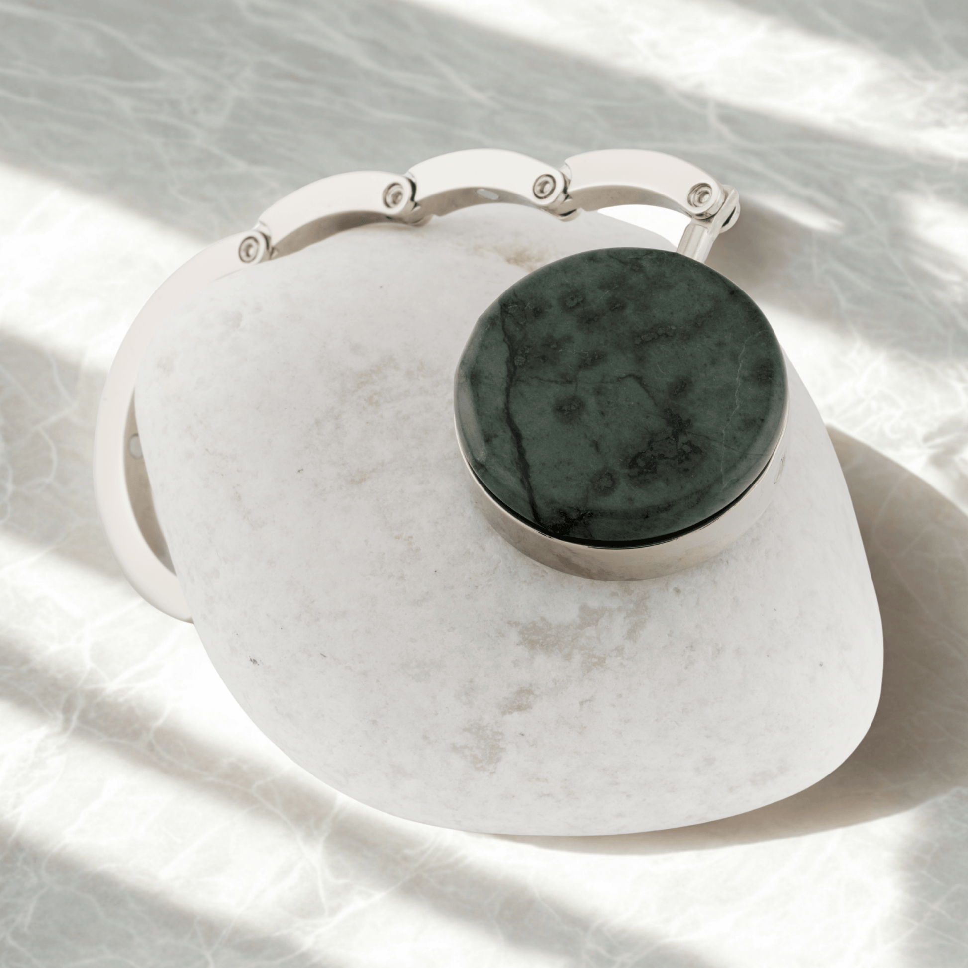 Ta funkcjonalna zawieszka została stworzona z antygorytu, kamienia, który oprócz swojego pięknego wyglądu, ma również trwałość i wytrzymałość, czyniąc go doskonałym materiałem na ten cel. To nie tylko ozdoba, to także narzędzie, które pozwala utrzymać Twoją torebkę na wierzchu i z dala od podłogi, zapewniając higienę i wygodę.